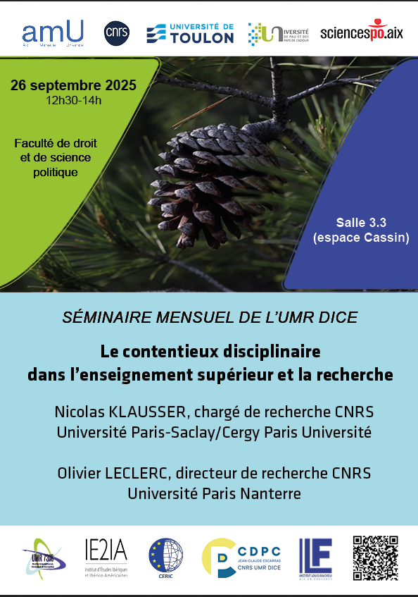 Lieu : Faculté de droit et de science politique, Aix-en-Provence, Salle 3.3 (espace Cassin) ou en zoom : https://univ-amu-fr.zoom.us/j/97924390396?pwd=sCGuxZGFKDtpMrp1mEtCSse1TH90rw.1