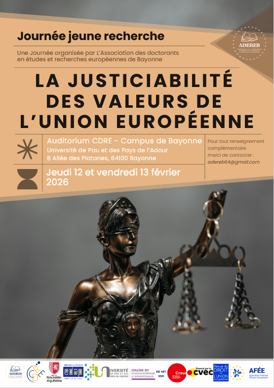 Cette Journée jeune recherche, organisée par l'Association des doctorants en études et recherches européennes de Bayonne, se déroulera sur le campus de Bayonne les jeudi 12 et vendredi 13 février 2026.